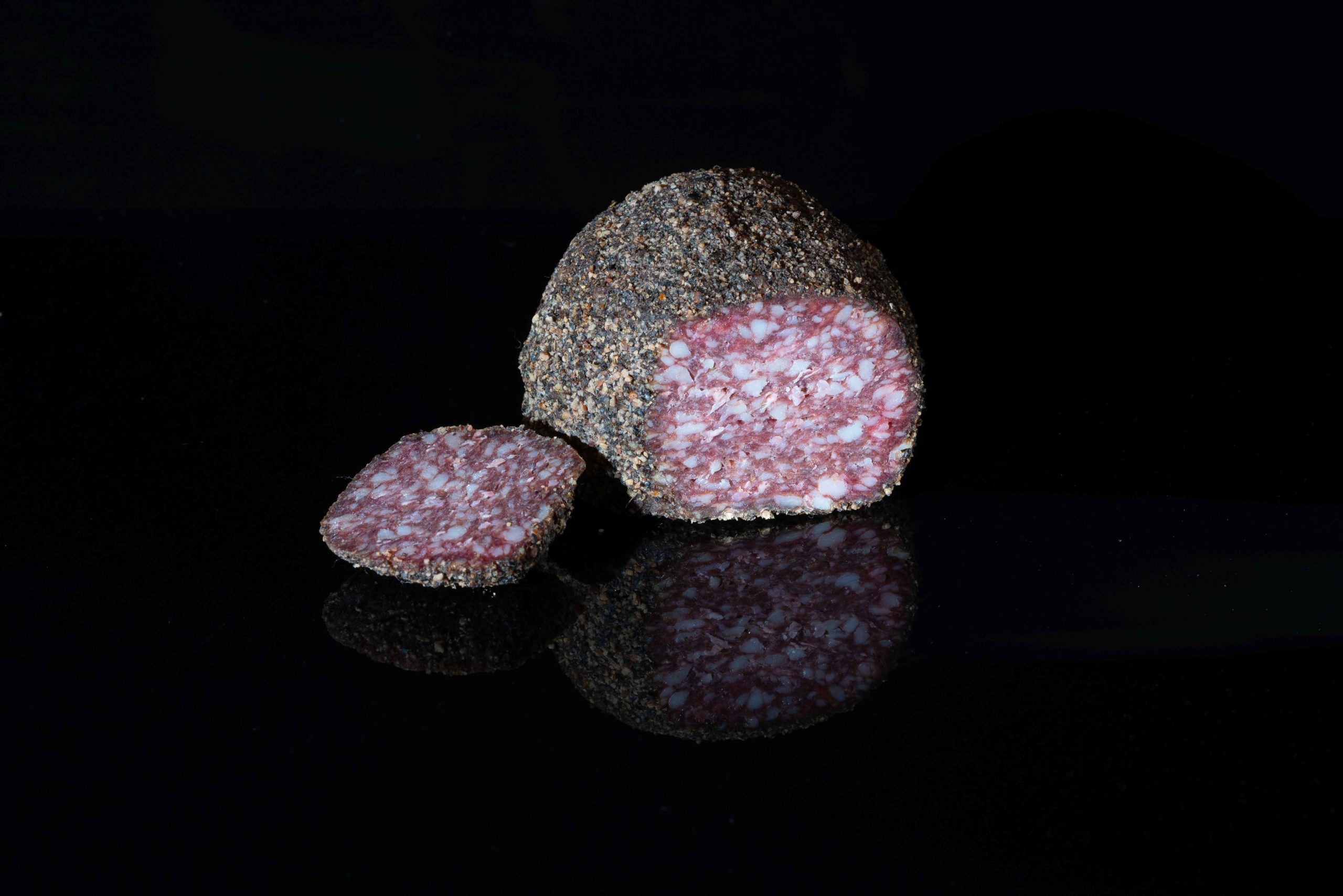 La bouloche au poivre est une saucisse à base de viande de porc et de bœuf Suisse, sans boyaux. Elle est enrobée de poivre.