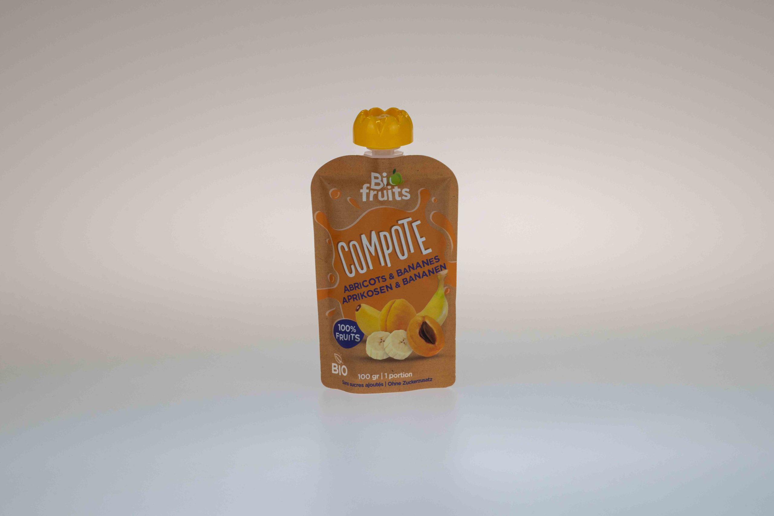 80% abricots* CH, 20% bananes** ECU, pasteurisé. Antioxydant : acide ascorbique
