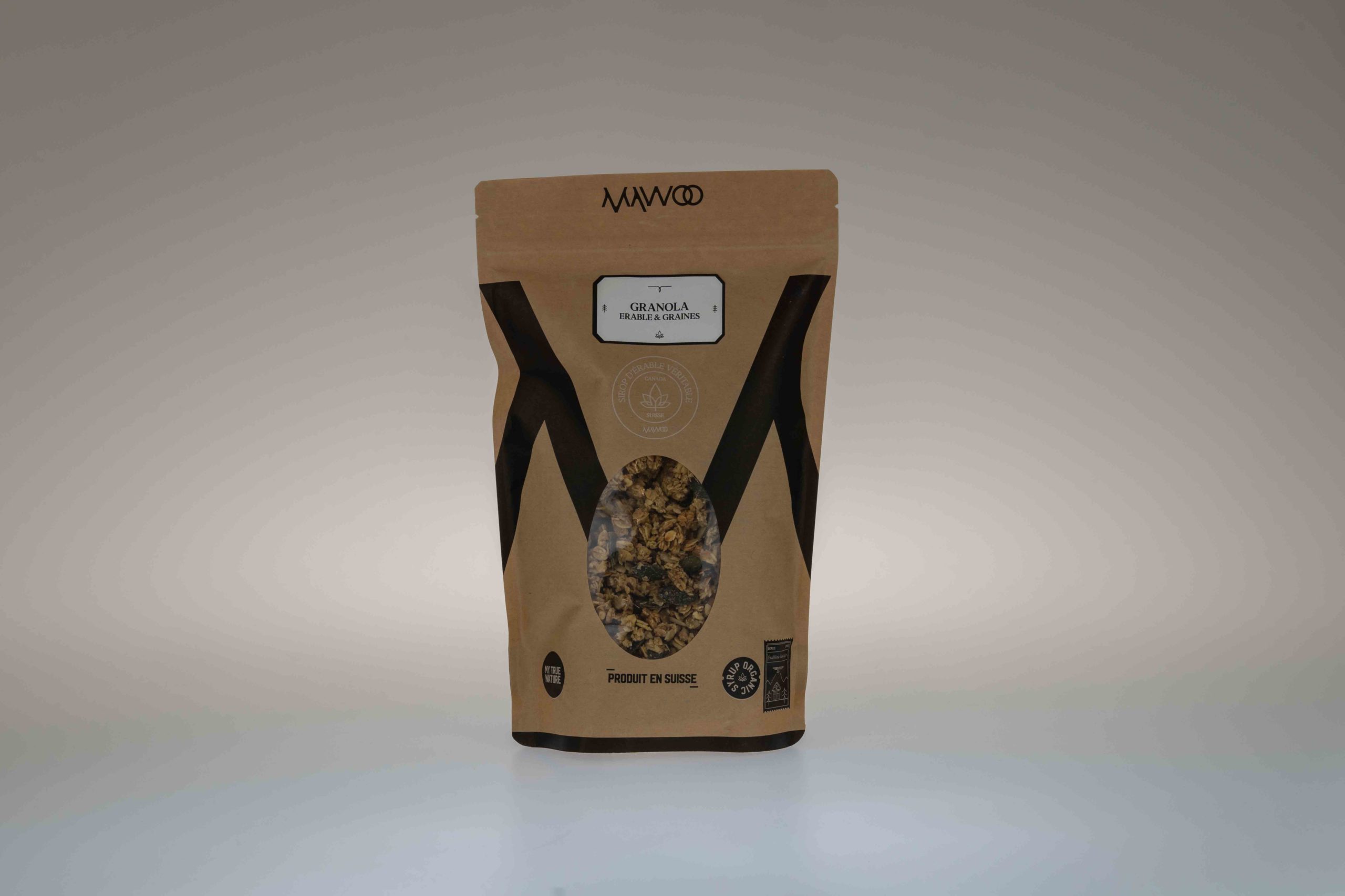Muesli croustillant aux flocons de céréales, graines, amandes caramélisées et au goût authentique et incomparable de l’érable. Accompagné de lait ou de yaourt nature, il est l’allié parfait du petit déjeuner équilibré ou d’une collation saine et naturelle.