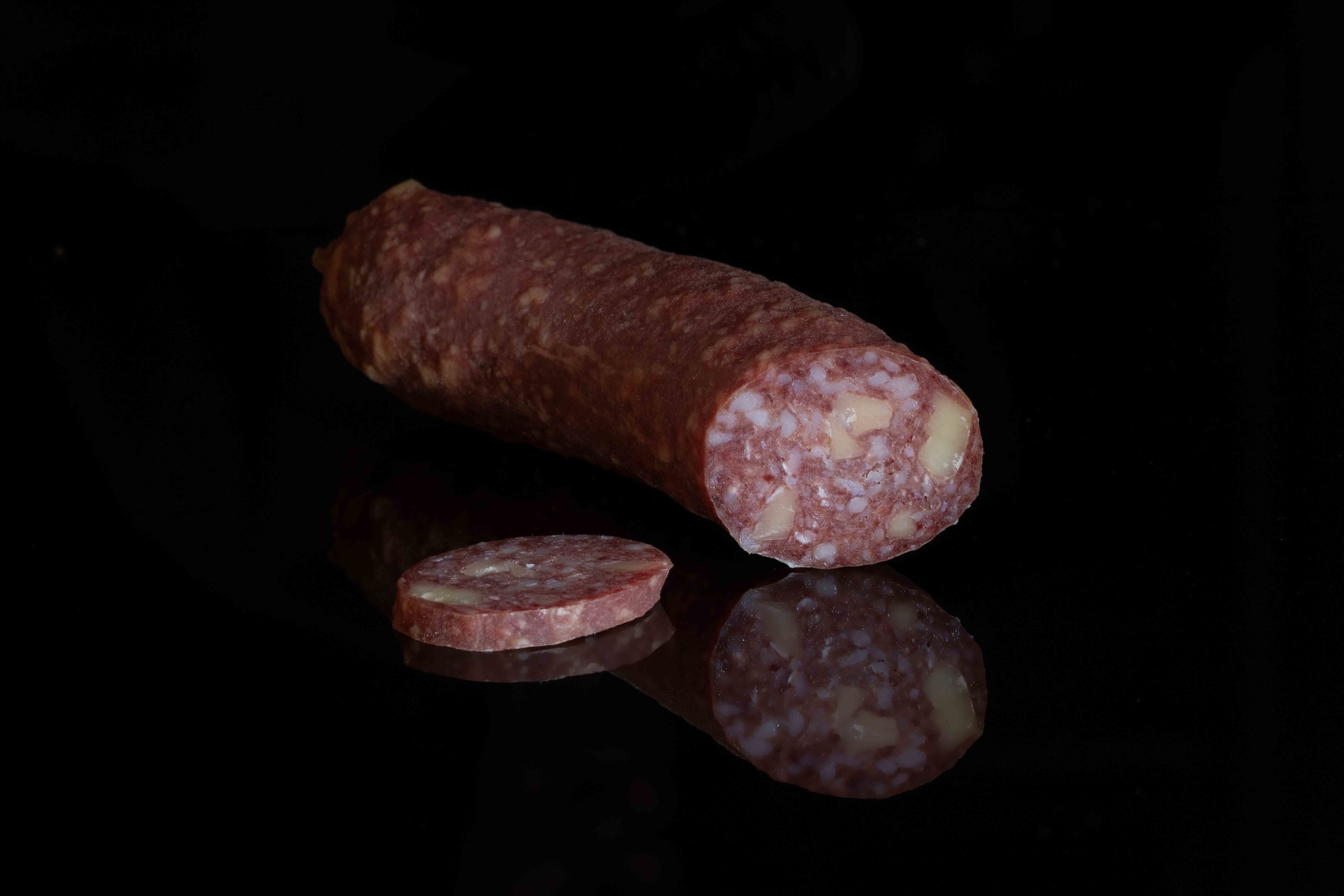 La saucisse au fromage est fabriquée à base de viande de porc et de bœuf Suisse. Dans l’assaisonnement on y ajoute du fromage Valaisan.
